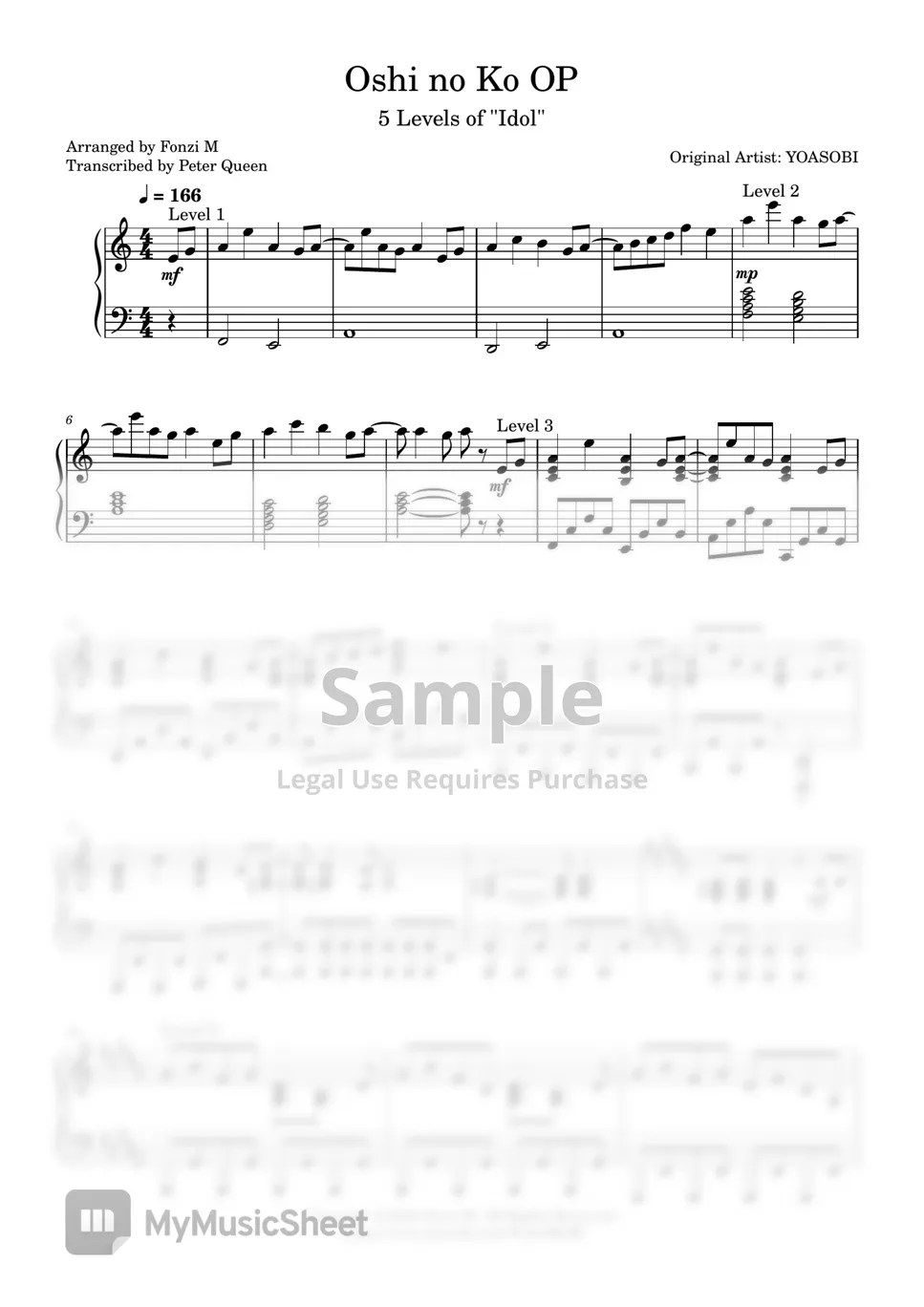 YOASOBI Oshi no Ko OP 5 Levels of "Idol" Sheets by Fonzi M