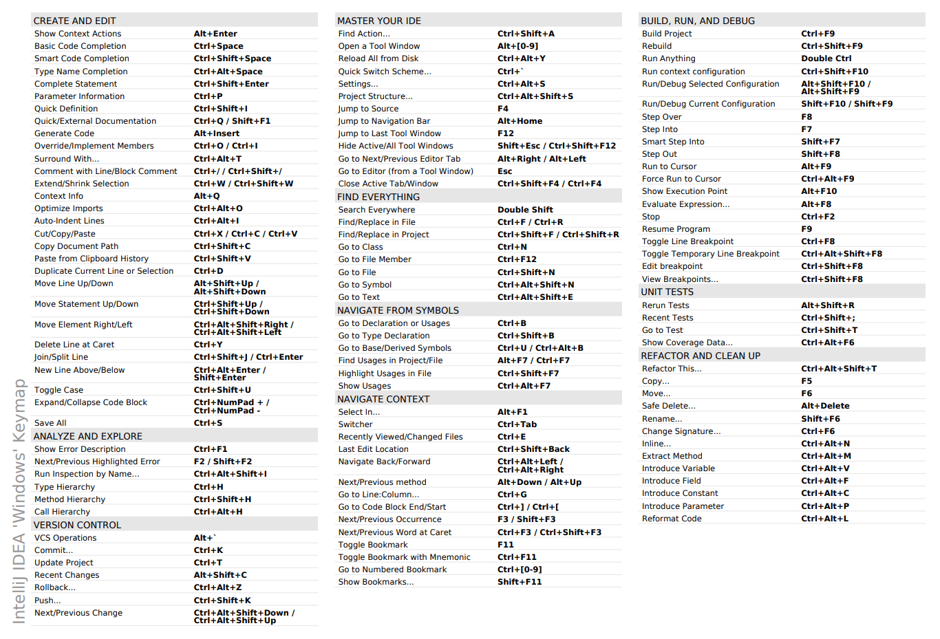 IntelliJ IDE Shortcuts Cheat Sheet by ridermansb Download free from