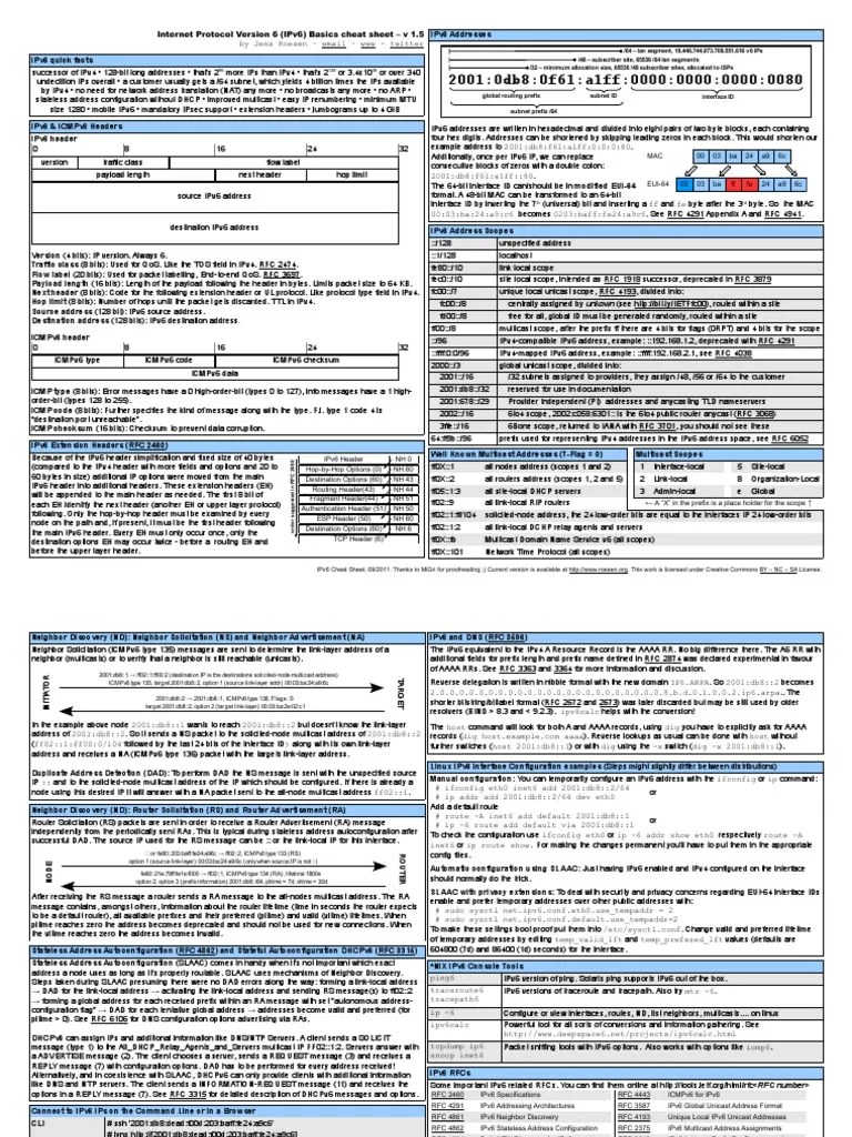 IPv6 Cheat Sheet and IPv6 Cheat Sheet Reference Broadcast