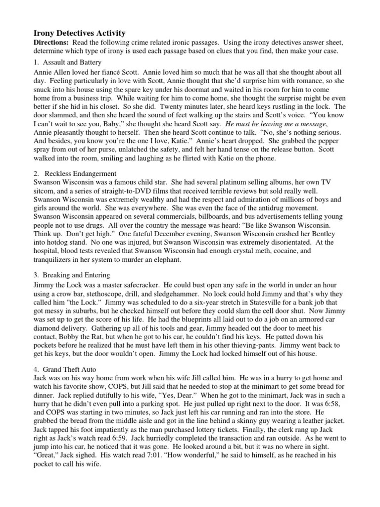 Web here's a fun irony activity. Students read the crime related passages, which have something ironic in each. They will read examples of irony and.