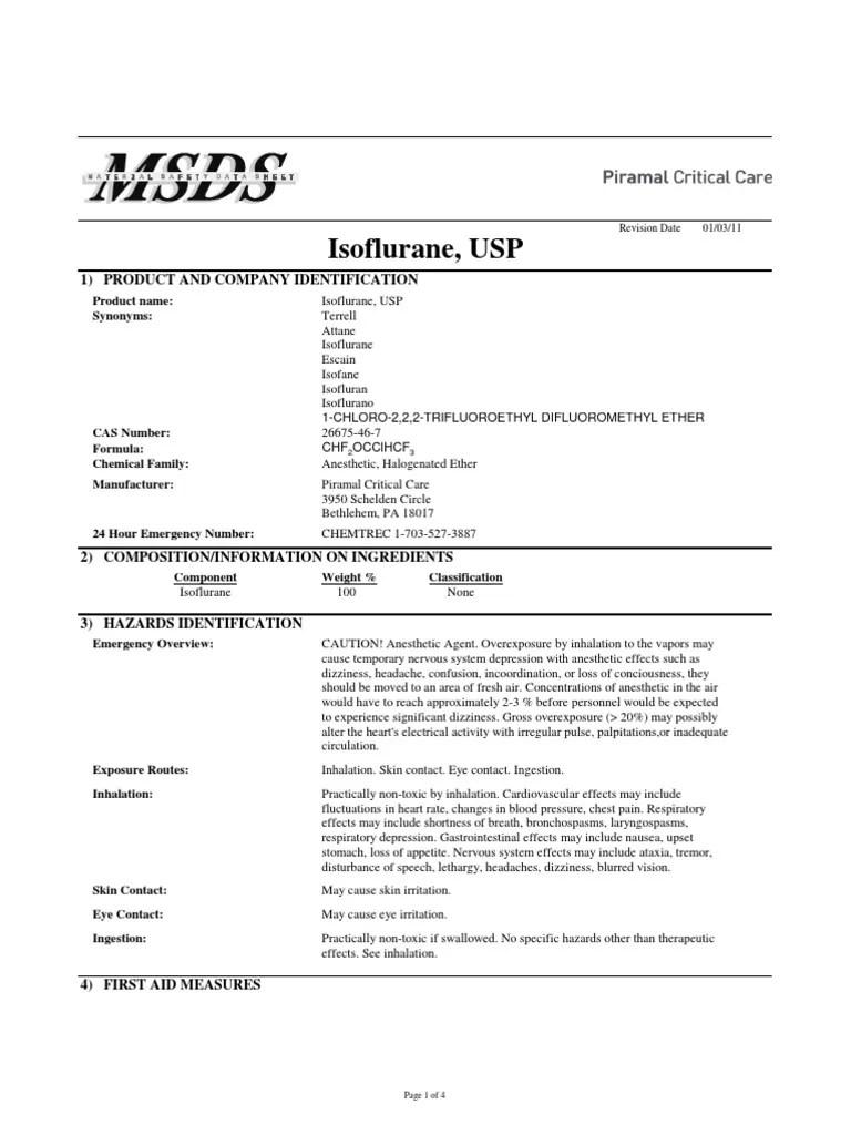 Isoflurane Safety Data Sheet - Web isoflurane safety data sheet according to the reach regulation (ec) 1907/2006 amended by regulation (eu) 2020/878 issue date:.