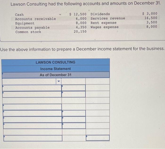 Lawson Consulting Had The Following Accounts And Amounts On December 31.
