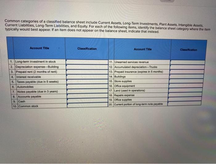 Solved Common categories of a classified balance sheet