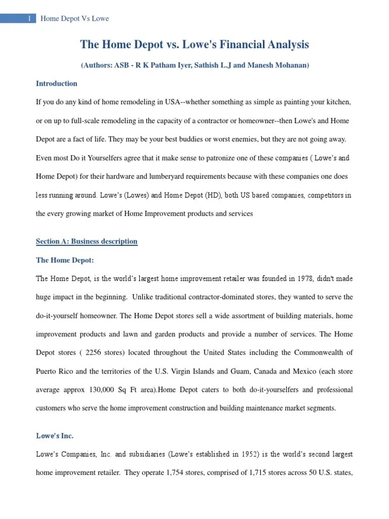 THD vs Lowes balance sheet &Financial Analysis The Home Depot Home