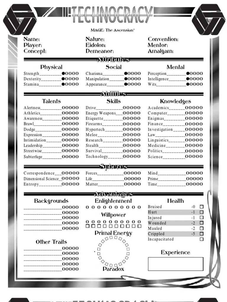 Character Sheet Technocracy PDF Role Playing Entertainment