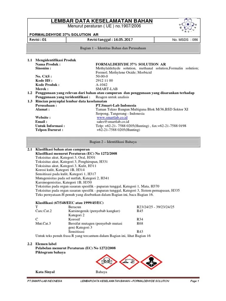 msds formalin Formaldehyde Toxicity