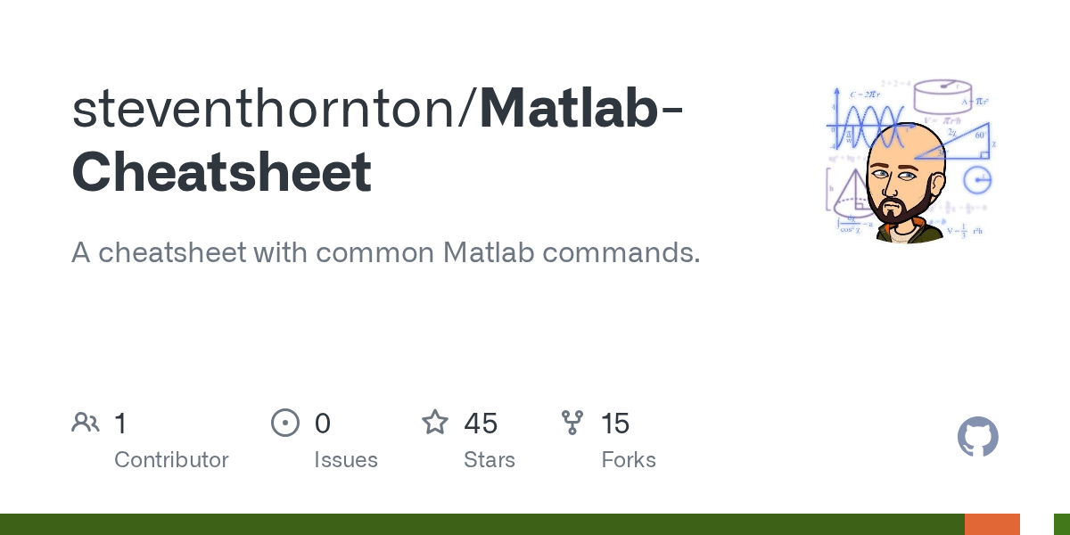 GitHub steventhornton/MatlabCheatsheet A cheatsheet with common
