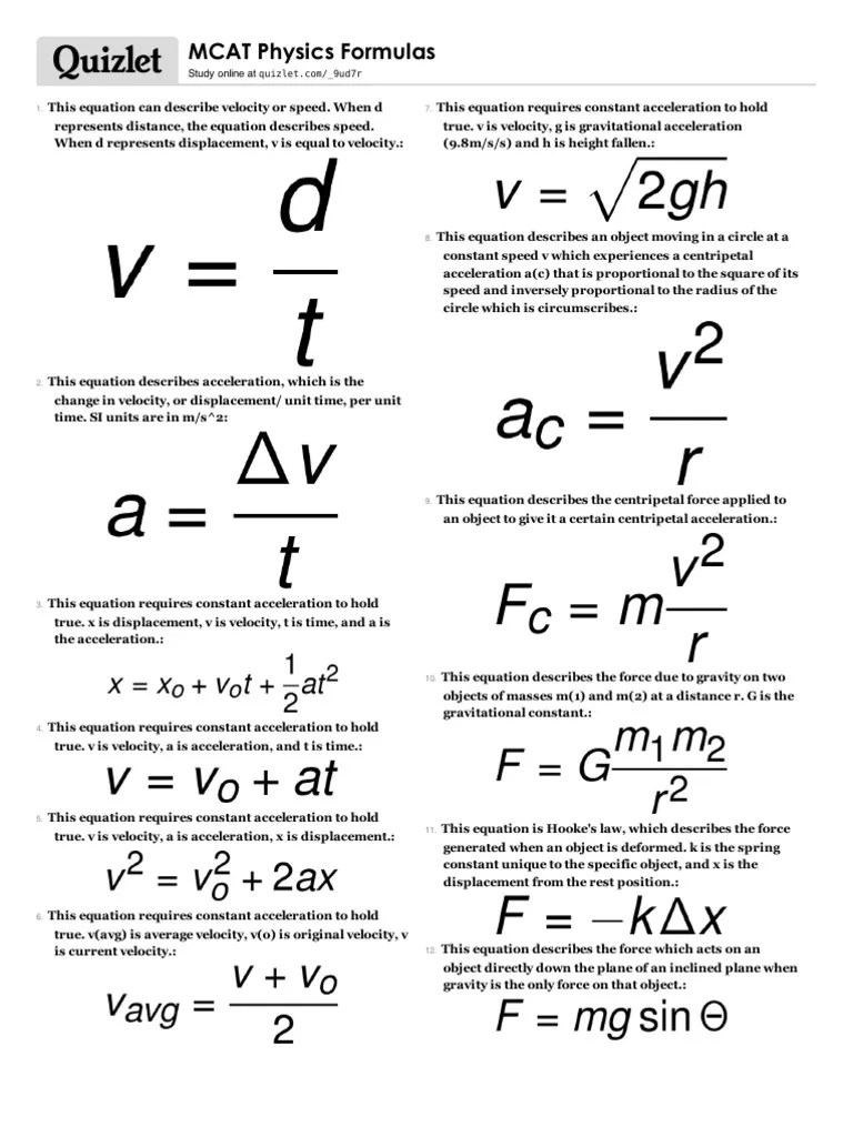 Mcat Physics Formula Sheet Physics Info