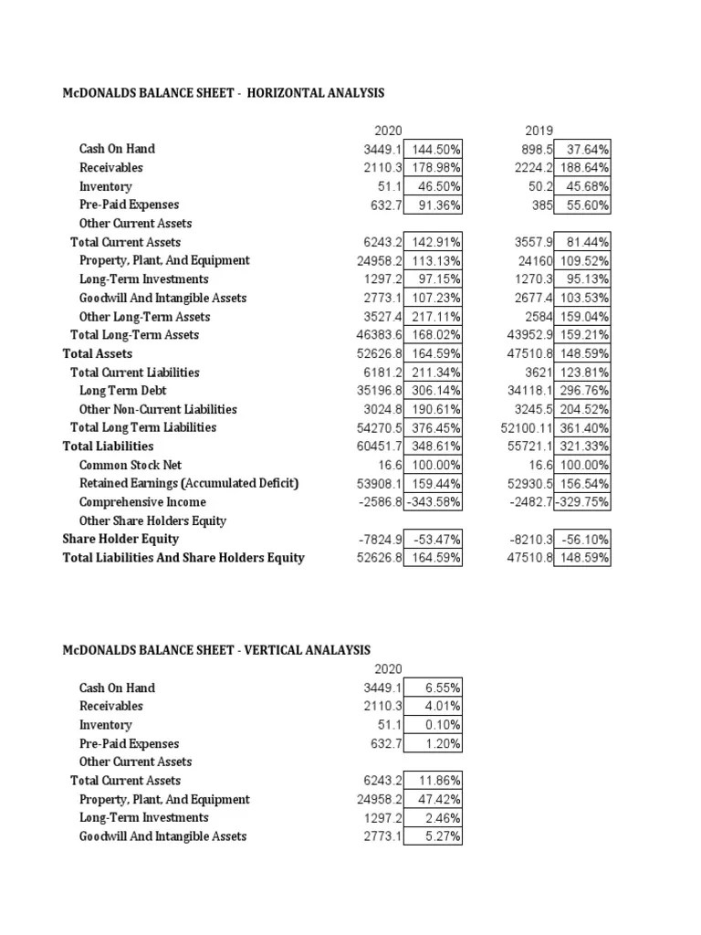 Mcdonalds Balance Sheet Horizontal Analysis PDF Equity (Finance