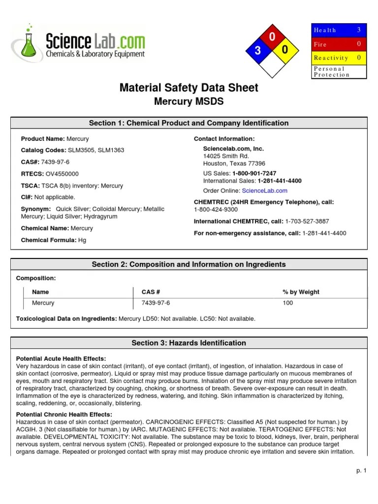 Mercury Material Safety Data Sheet - Web material safety data sheet or sds for mercury 104404 from merck for download or viewing in the browser. Hazard(s) identification classification this chemical is considered hazardous by the 2012 osha hazard communication.