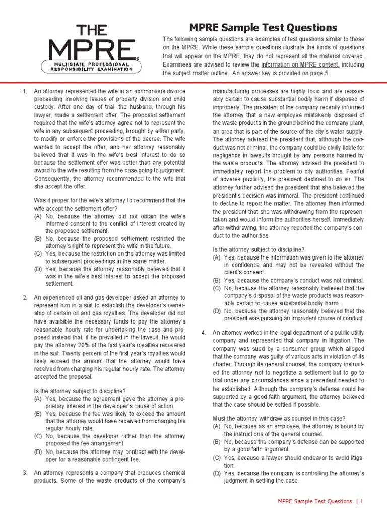 MPRE Sample Test Questions Lawyer Law Firm