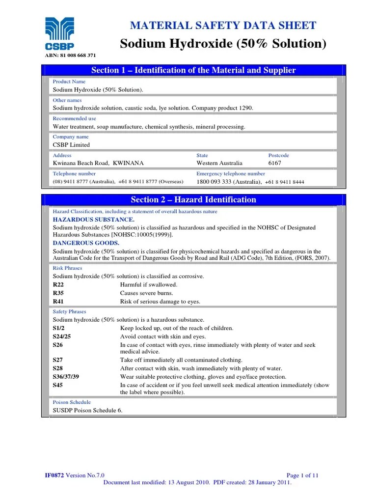 msds Sodium hydroxide.pdf Sodium Hydroxide Dangerous Goods