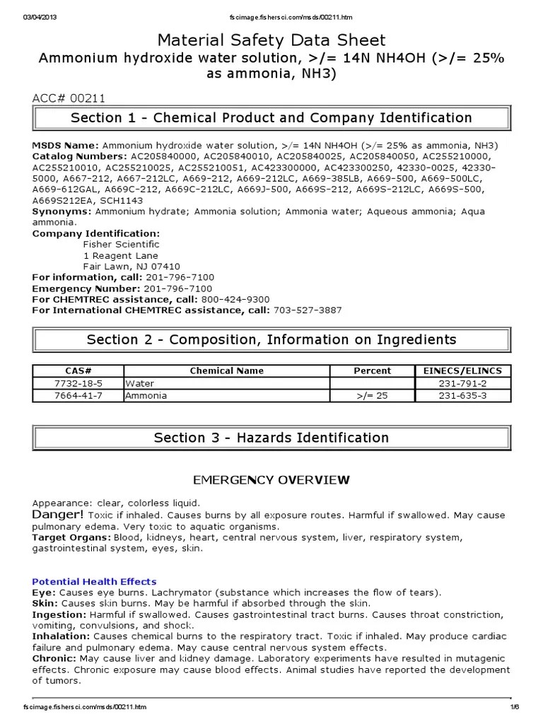 Web product name ammonium hydroxide, 28% nh3 cat no. Web 15 jet view drive, rochester, ny 14624 emergency telephone number: Fisher science education emergency telephone.