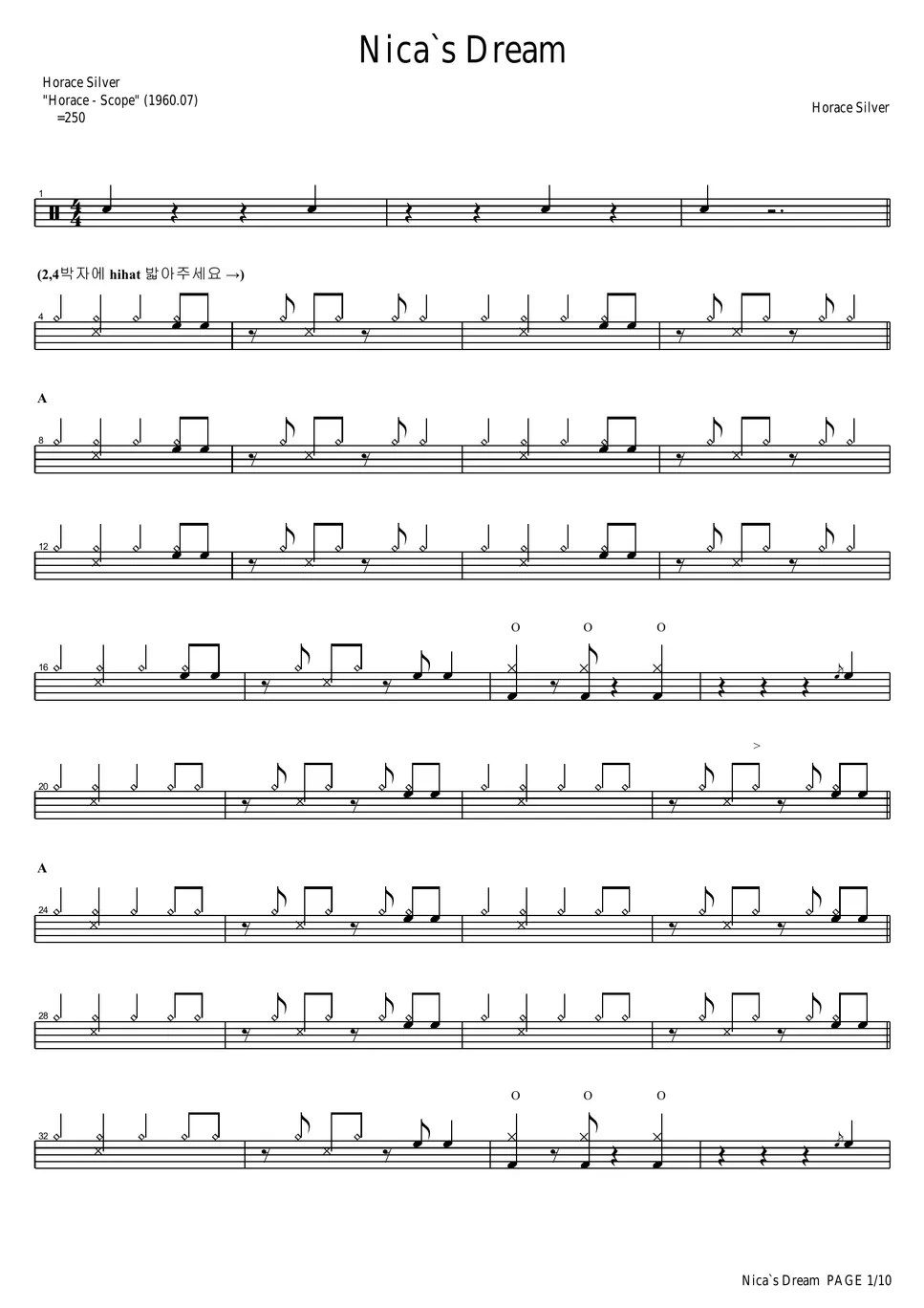 Horace Silver Nicas Dream Sheet by COPYDRUM