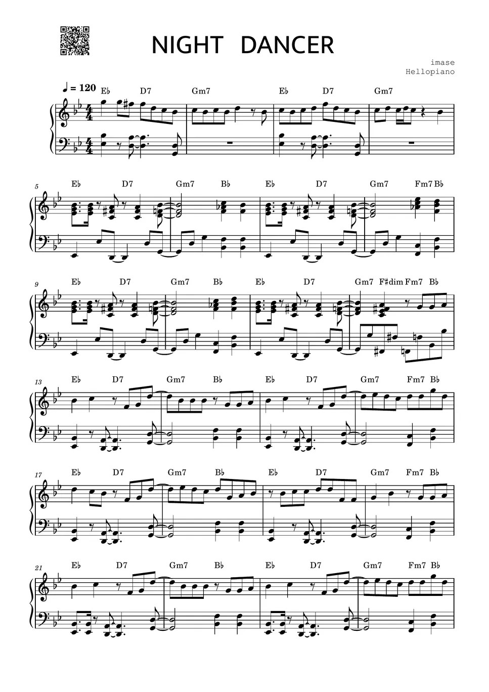 Web get free night dancer sheet music by imase as a digital notation file for piano/keyboard in g minor (transposable).