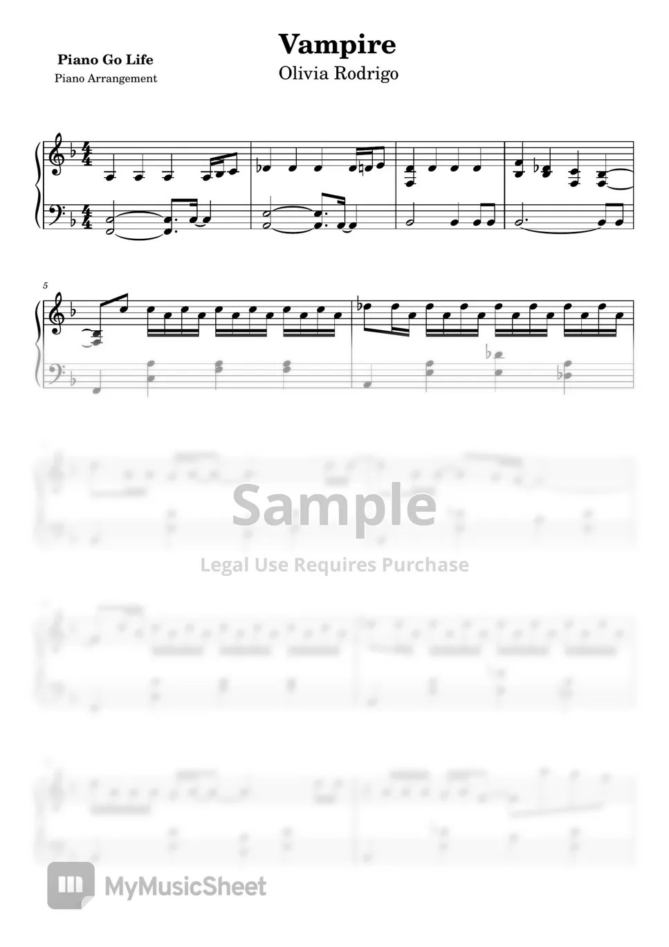 Olivia Rodrigo Vampire (PIANO SHEET) Sheets by John Rod Dondoyano