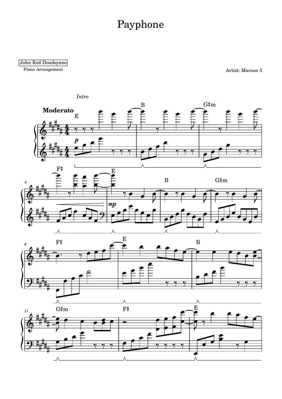 Maroon 5 Payphone (PIANO SHEET) Nuty by John Rod Dondoyano