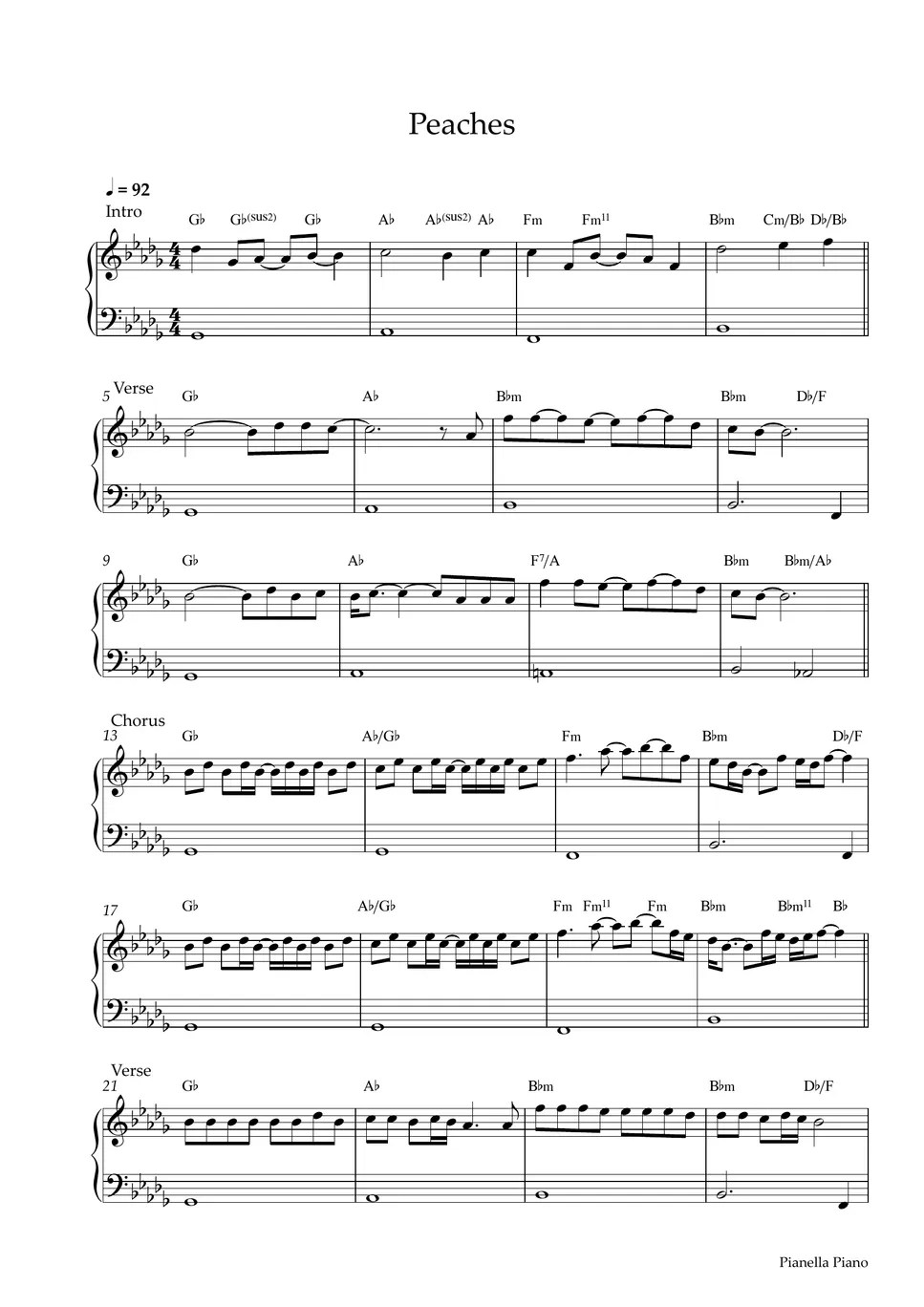 Peaches Piano Sheet Music Easy