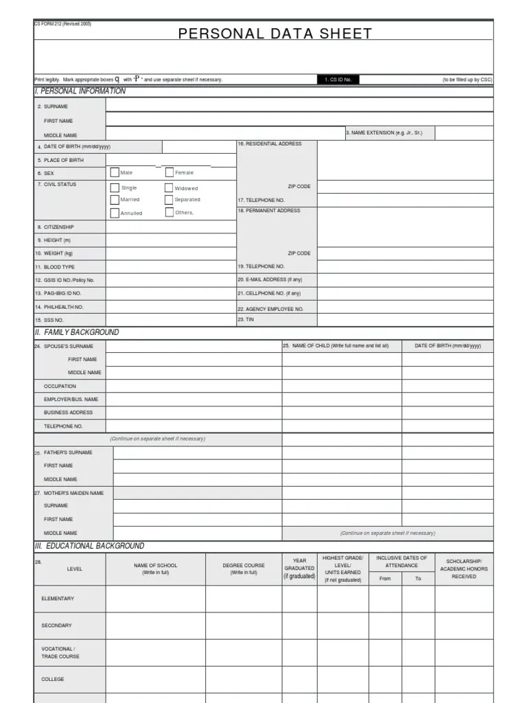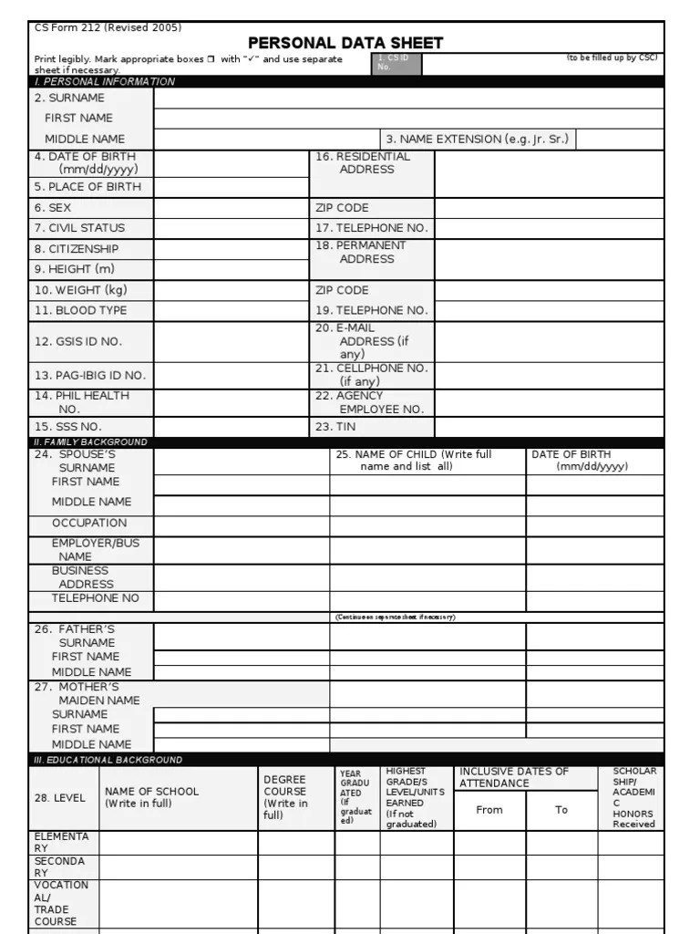 Csc Personal Data Sheet Government Politics