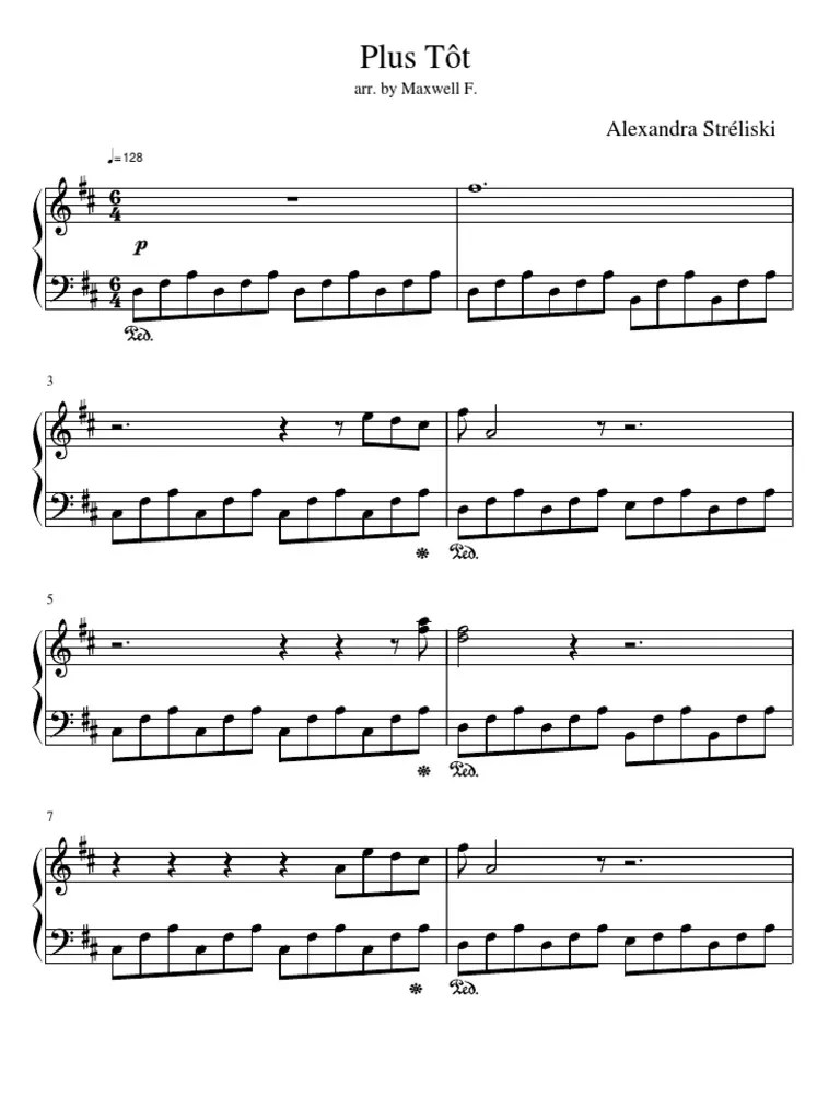 Web Download Pdf Sheet Music Of Plus Tot By Alexandra Stréliski.