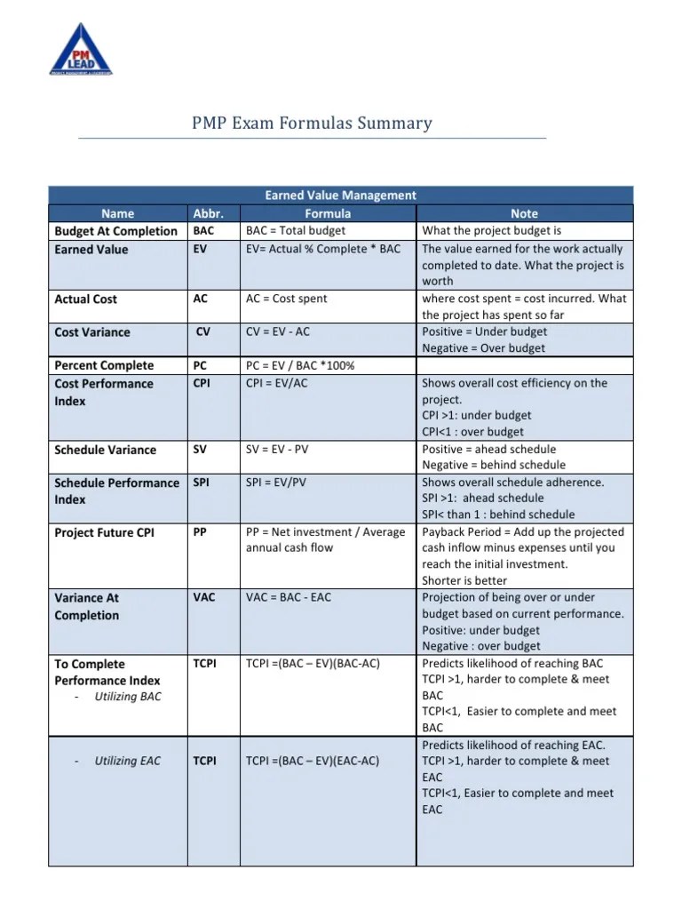 Web take a look and bookmark these specially curated pmp formula cheat sheet that will give you all the important pmp formulas that you will need to know to clear the pmp exam with ease. Web so, here’s a pmp formulas cheat sheet to help you retain the most important ones from the pmp exam prep perspective. Earned value management.