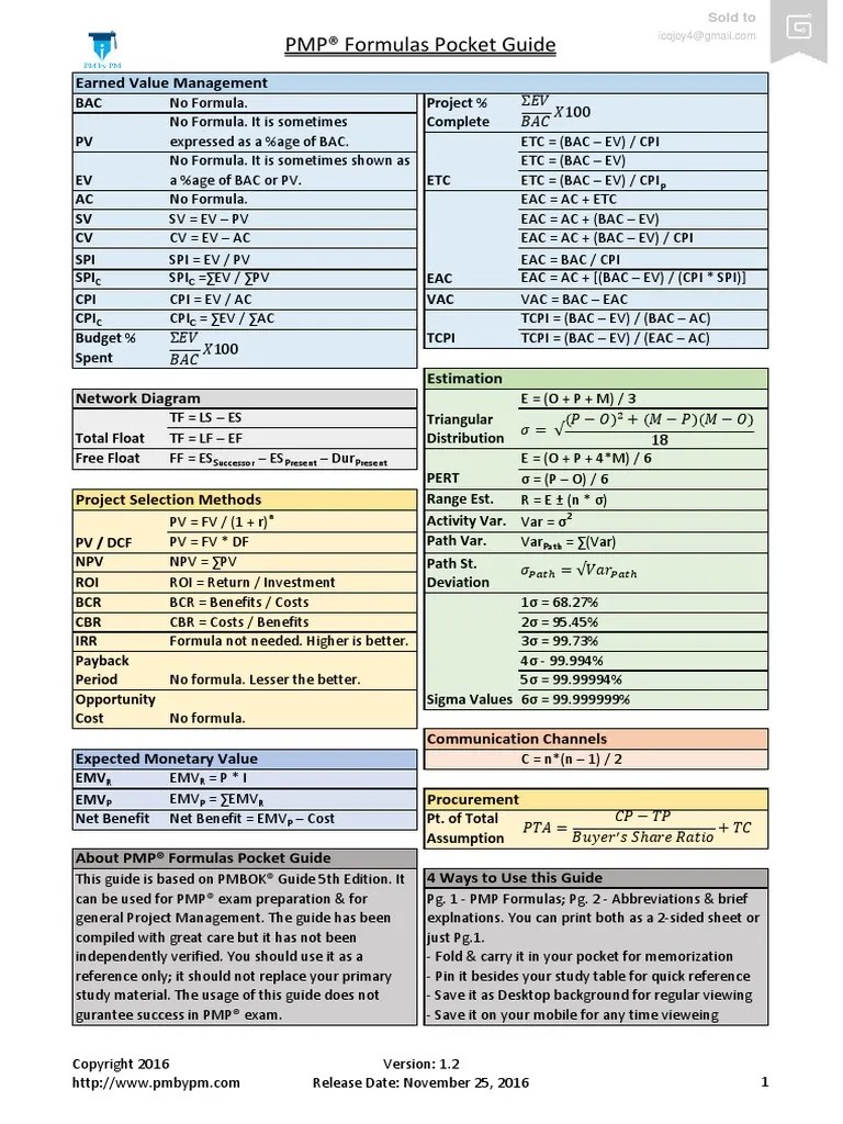 Pmp Formula Sheet - Study ev formulas with examples and explanations that make sense. Web so, here’s a pmp formulas cheat sheet to help you retain the most important ones from the pmp exam prep perspective. Web take a look and bookmark these specially curated pmp formula cheat sheet that will give you all the important pmp formulas that you will need to know to clear the pmp exam with ease. Our pmp formulas cheat sheet consists of important formulas that you. Earned value management (evm) 2. Top pmp formulas for mathematical calculations. Web understand formulas and calculations for the pmp exam in an easy and approachable way. Web capm / pmp formulas cheat sheet;