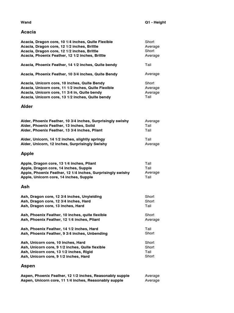 Pottermore Wand Cheat Sheet - If you want to find out what. Web this tool can be used to find out the quiz answers corresponding to a wand in pottermore. Web wand questions/answers (alternatively fill out the spreadsheet here) what height would you say you are for your age?
