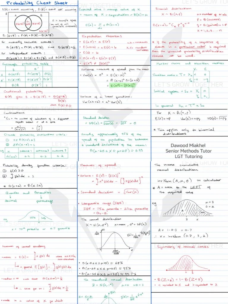 Cheat sheet algebra (i) a+z b a b = z (ii) a(b+ c) = a b+ a c. Web probability for dummies cheat sheet principles of probability. (iv) pa a = p a. [ ( )] standard deviation of a probability distribution: A bmeans that ais less than or the same as b.