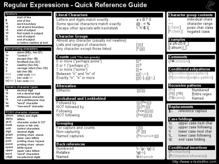 Regular Expressions Cheat Sheet Regular expression, Cheat sheets, Sql