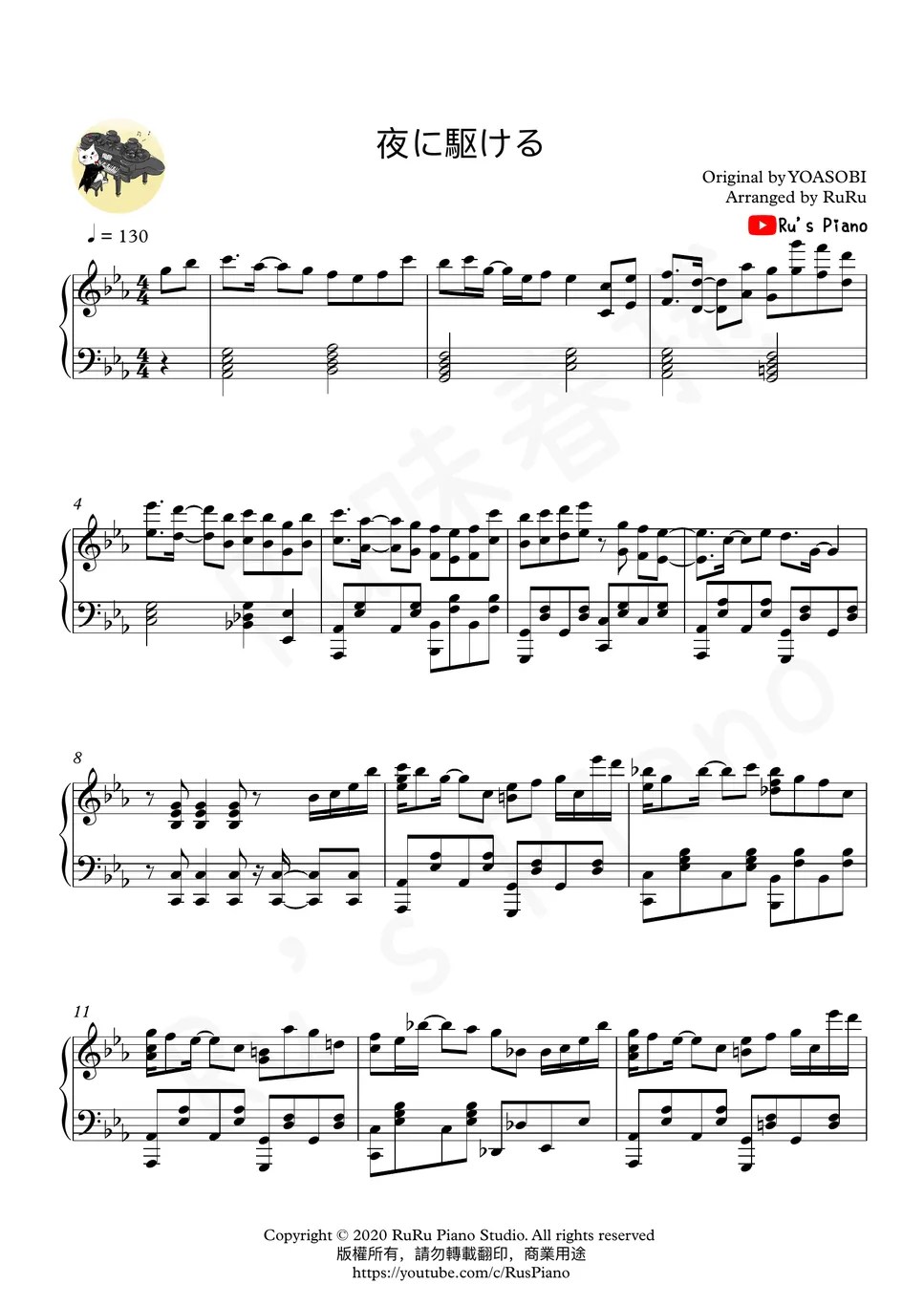 YOASOBI 夜に駆ける Racing into the Night Bản nhạc by Ru's Piano