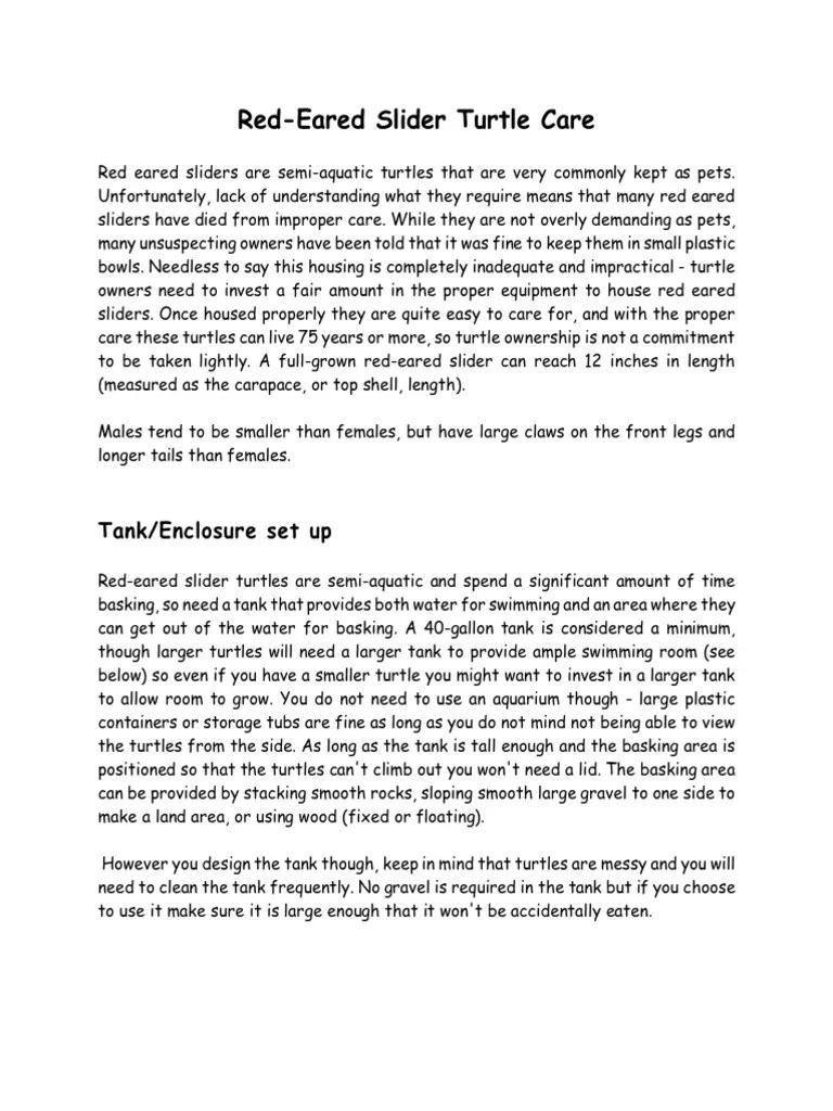 Care Sheet on Red Eared Turtle Red Ear Turtle, Red Eared Slider Turtle