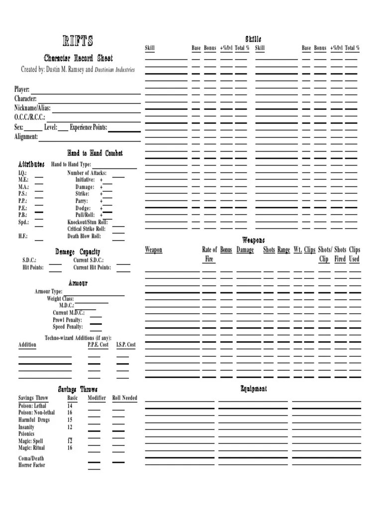 Rifts Character Sheet Scan 2 by dragonfett on DeviantArt