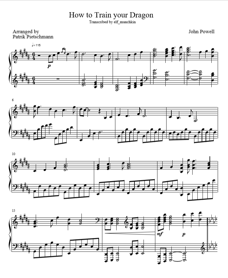 Romantic Flight/Flying Theme How to Train your Dragon sheet music