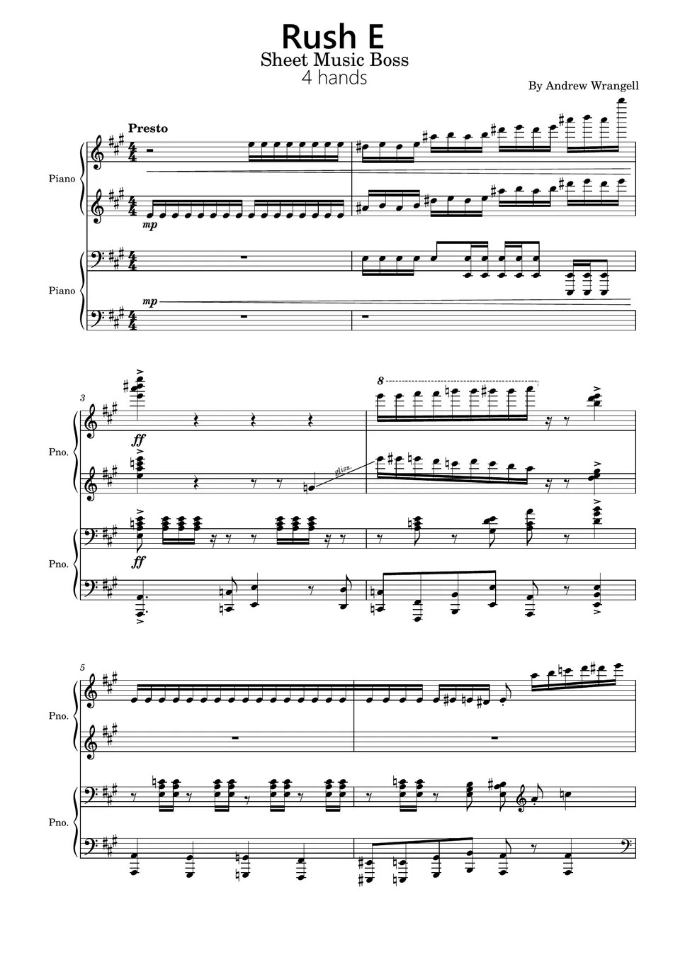Andrew Wrangell Rush E (Rush E ,4 hands,Piano Sheet,Andrew Wrangell