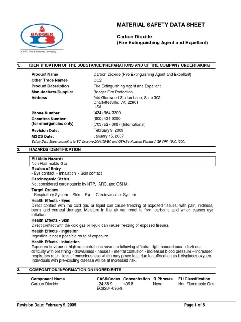Material Safety Data Sheet Carbon Dioxide (Fire Extinguishing Agent