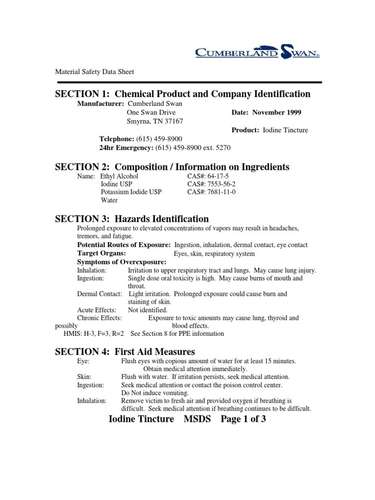 Iodine Tincture MSDS Personal Protective Equipment Toxicity