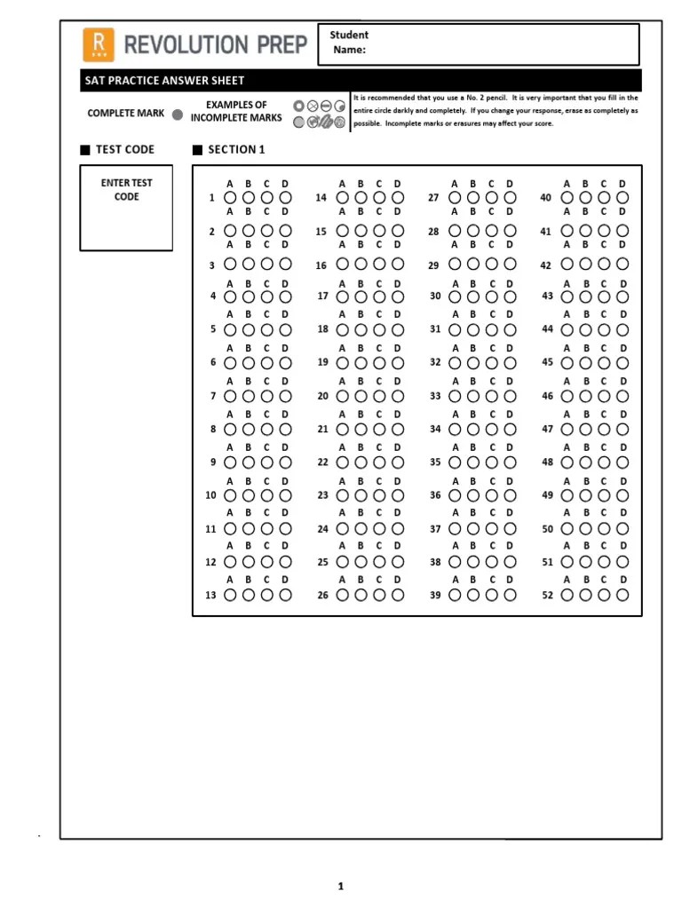 Sat Practice Answer Sheet - Web in this article, i'll tell you where to find all official, printable sat practice tests and answer keys. It will look a little. Web (33 questions) question 1 choice b is the best answer because it most logically completes the text’s discussion of.