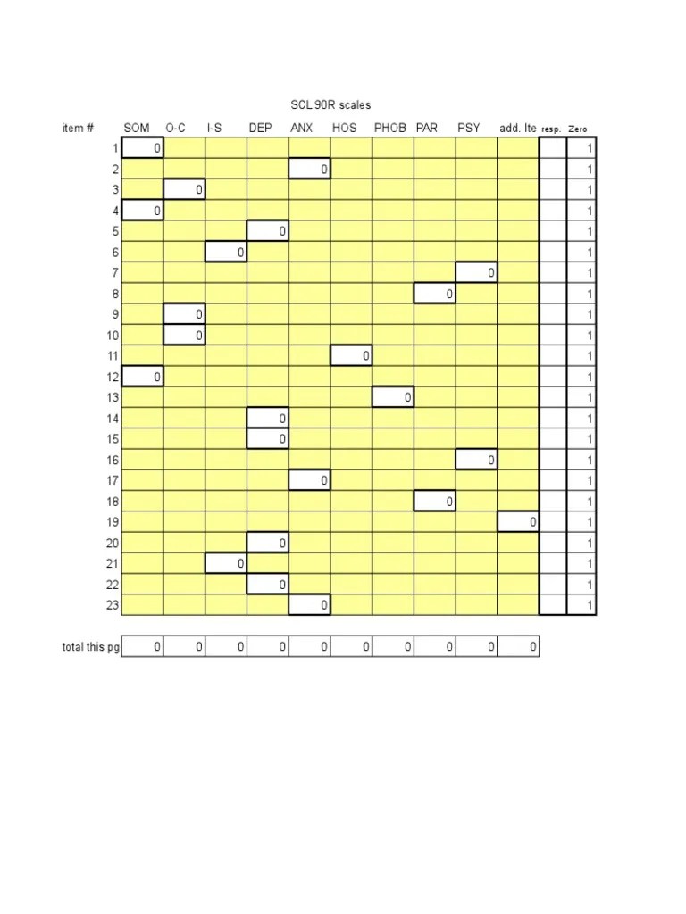 Scl-90 Scoring Sheet - Web each item is scored on a scale from 0 to 4 based on how much an individual was bothered by each item in the last week: 0 = not at all 1 = a little bit 2 = moderately 3 = quite a bit 4 = extremely somatization: After you have done so, select one of the numbered descriptors that best describes how.