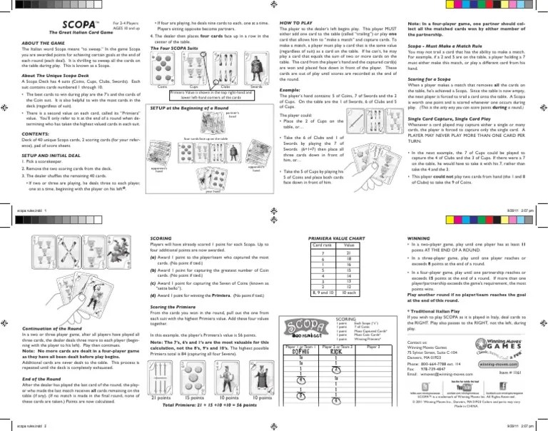 Scopa Score Sheet - Web points are scored for taking the most cards in total, for taking the most cards in the suit of coins (or diamonds), for.