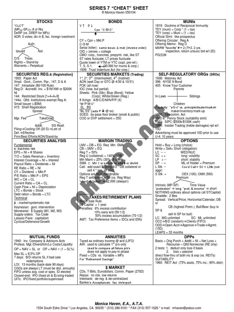 NASD Series 7 Cheat Sheet Monica Haven 01 Securities (Finance
