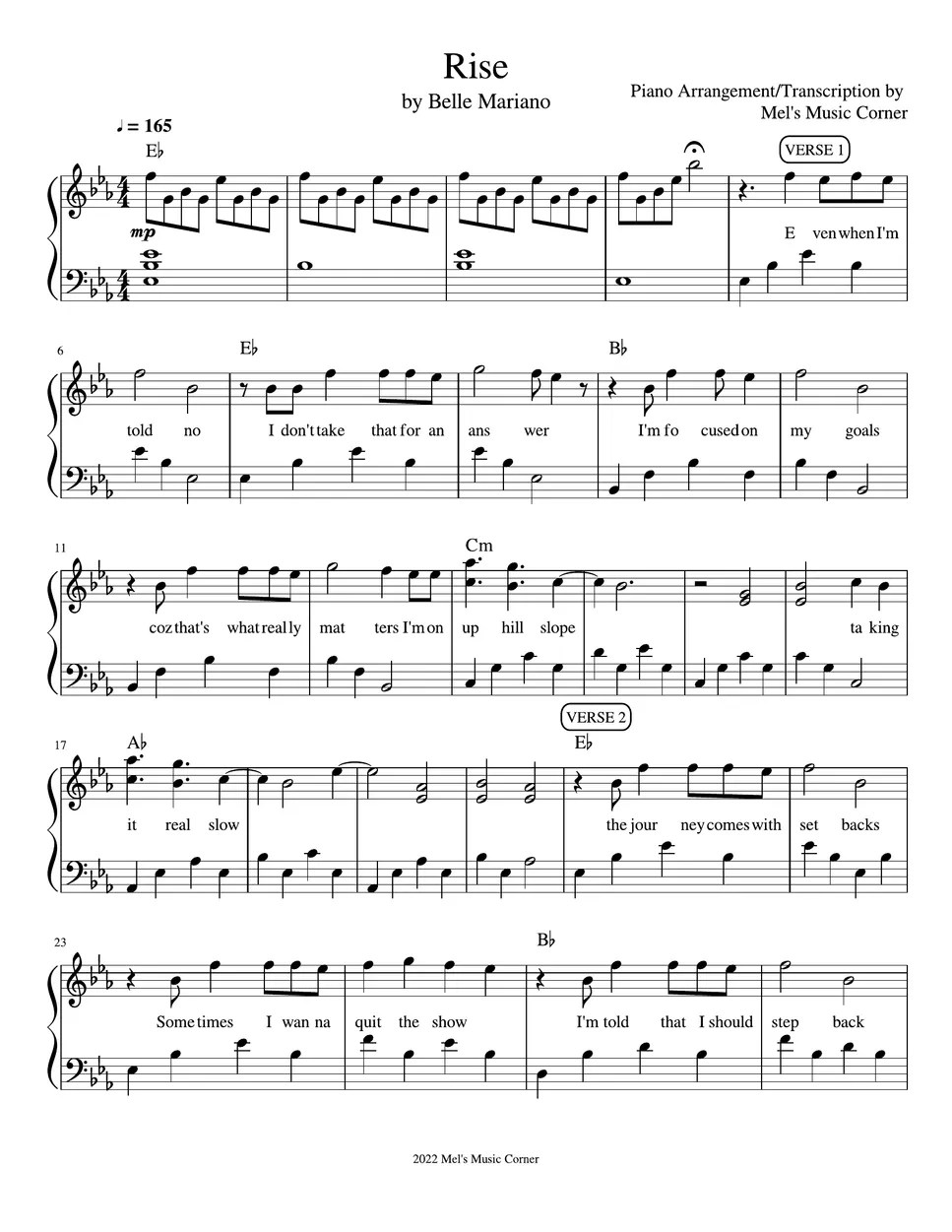 Belle Mariano Rise (piano sheet music) Partition musicale by Mel's