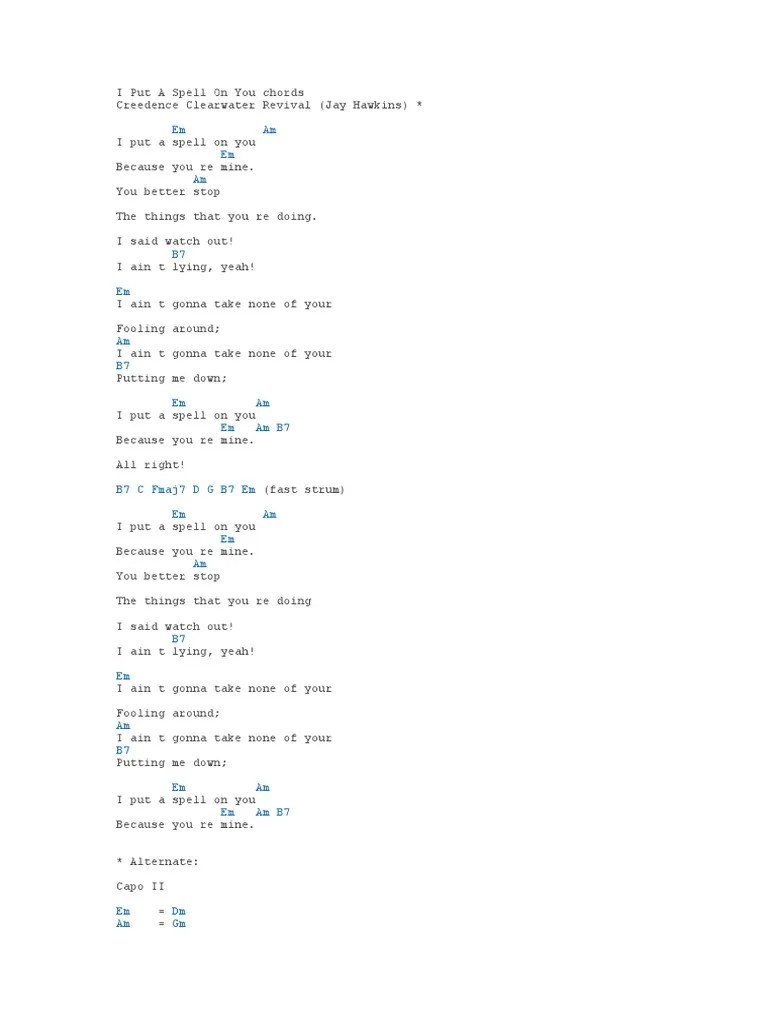 I Put A Spell On You Sheet Music Creedence Clearwater Revival EZ