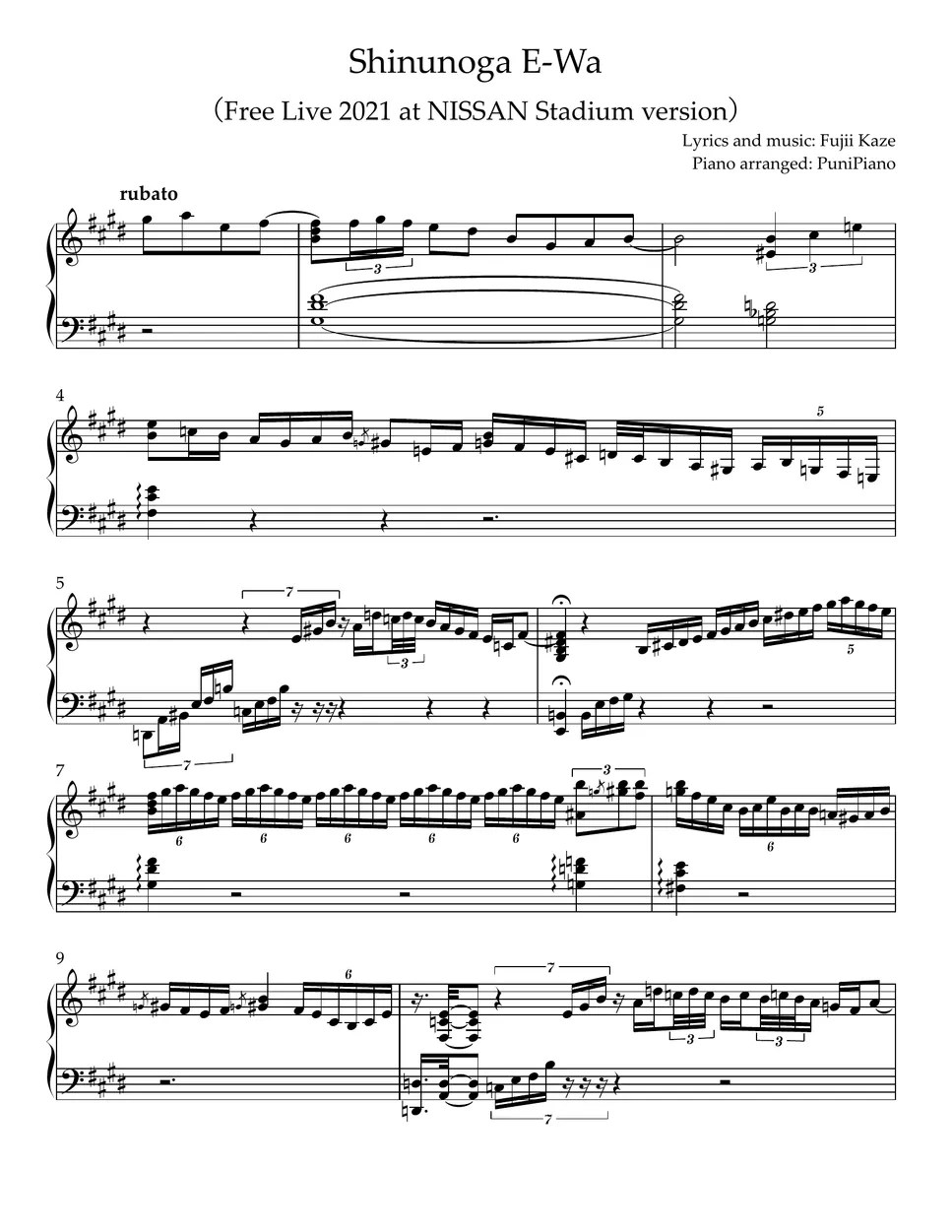 Fujii Kaze Shinunoga EWa Partition musicale by PuniPiano