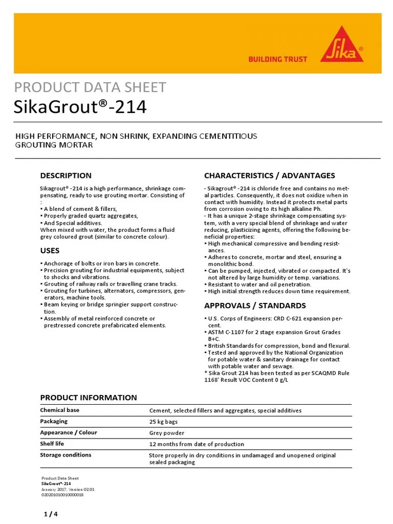 Sikagrout®214 Product Data Sheet PDF Reinforced Concrete Concrete