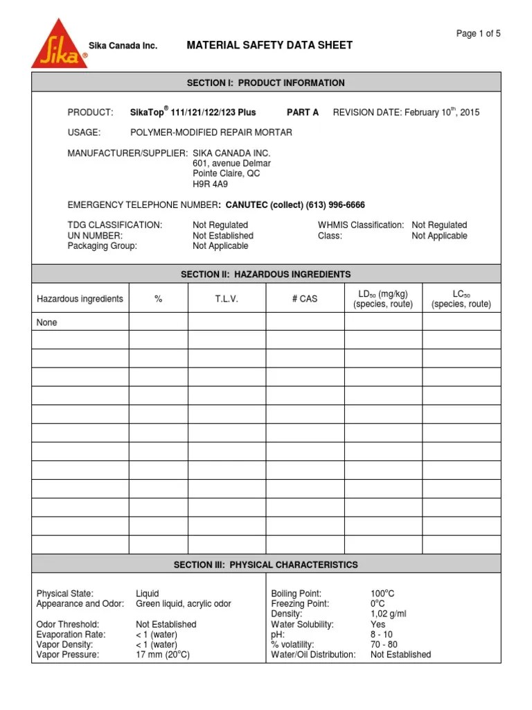 (PDF) SikaTop® Armatec®110 EpoCem® Part A Sika Canada · SAFETY DATA