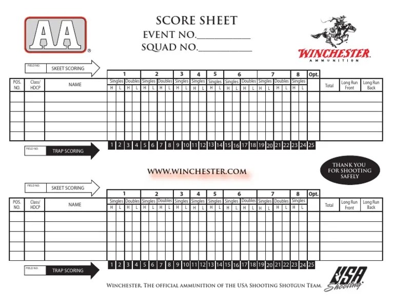Skeet Score Sheet - Web paperless scoring for trap, skeet, and sporting clays. Web selling trap targets, skeet targets, sporting clay targets, international targets throughout canada and the united states. Hotclays is an app that lets you score clay target sports, track. Web download printable scorecards (score sheets) for any trap, skeet, or sporting clays discipline. Web international skeet score sheet official.xls international skeet score sheet date:______________________ squad no. Web international skeet score sheet time: