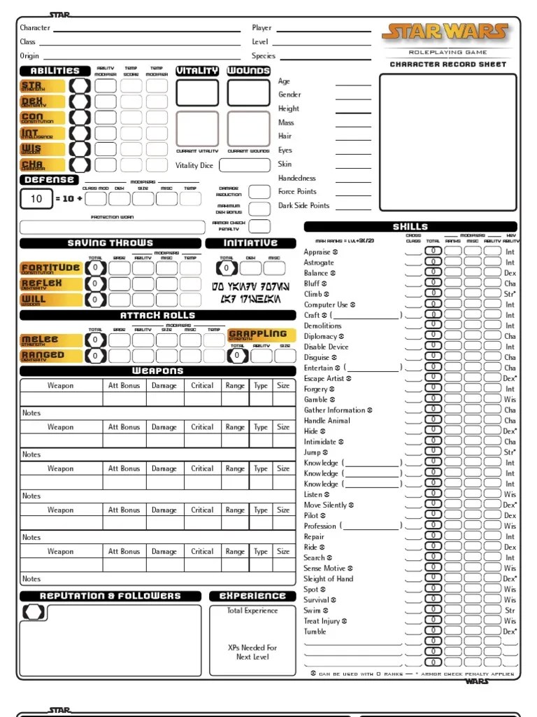 主 タクト 伝統 star wars d20 character sheet 変更可能 相反する 効果