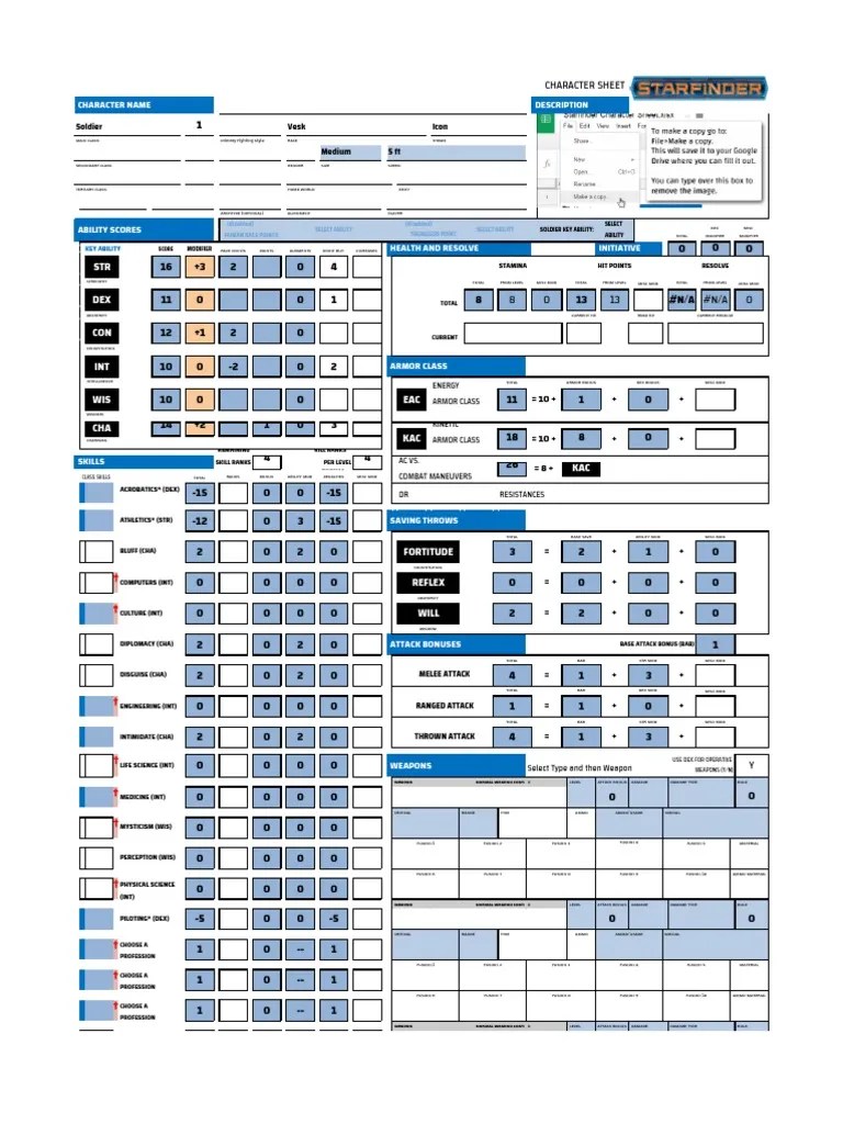 Starfinder Character Sheet (fillable) Role Playing Games Role Playing