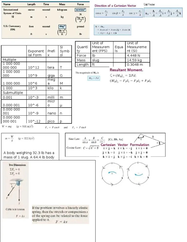 SOLUTION Engineering science statics and dynamics formulas cheat sheet