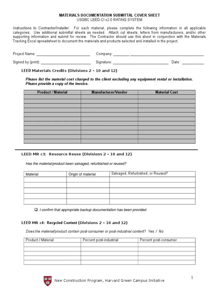 LEED v4.1 Submittal Cover Sheet Green Badger